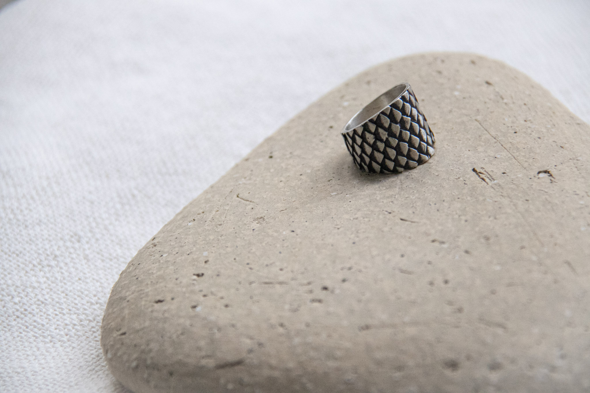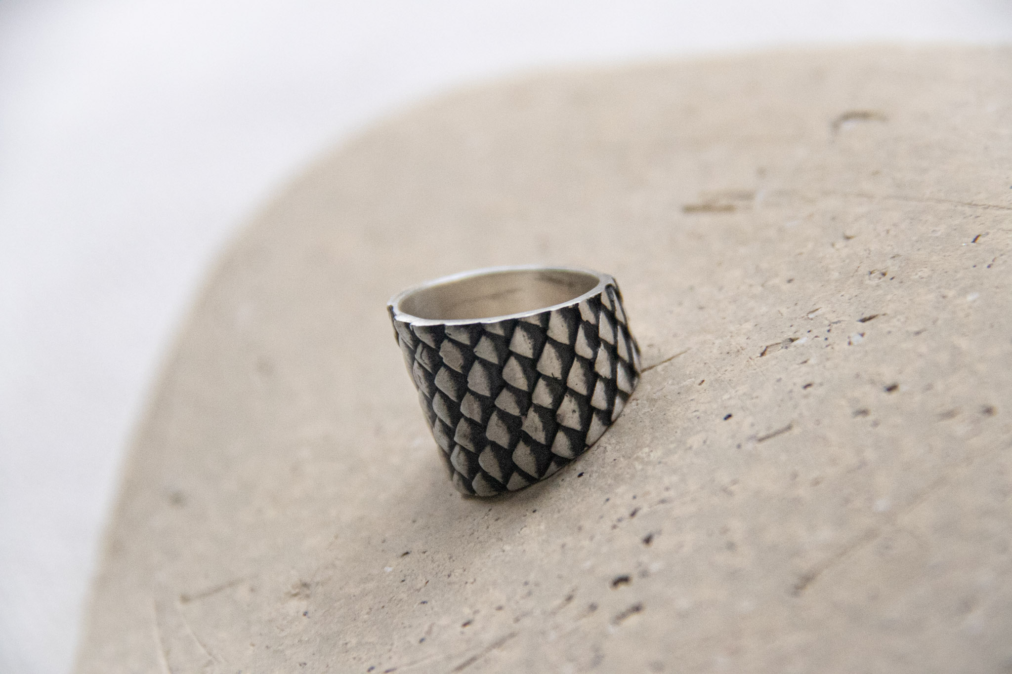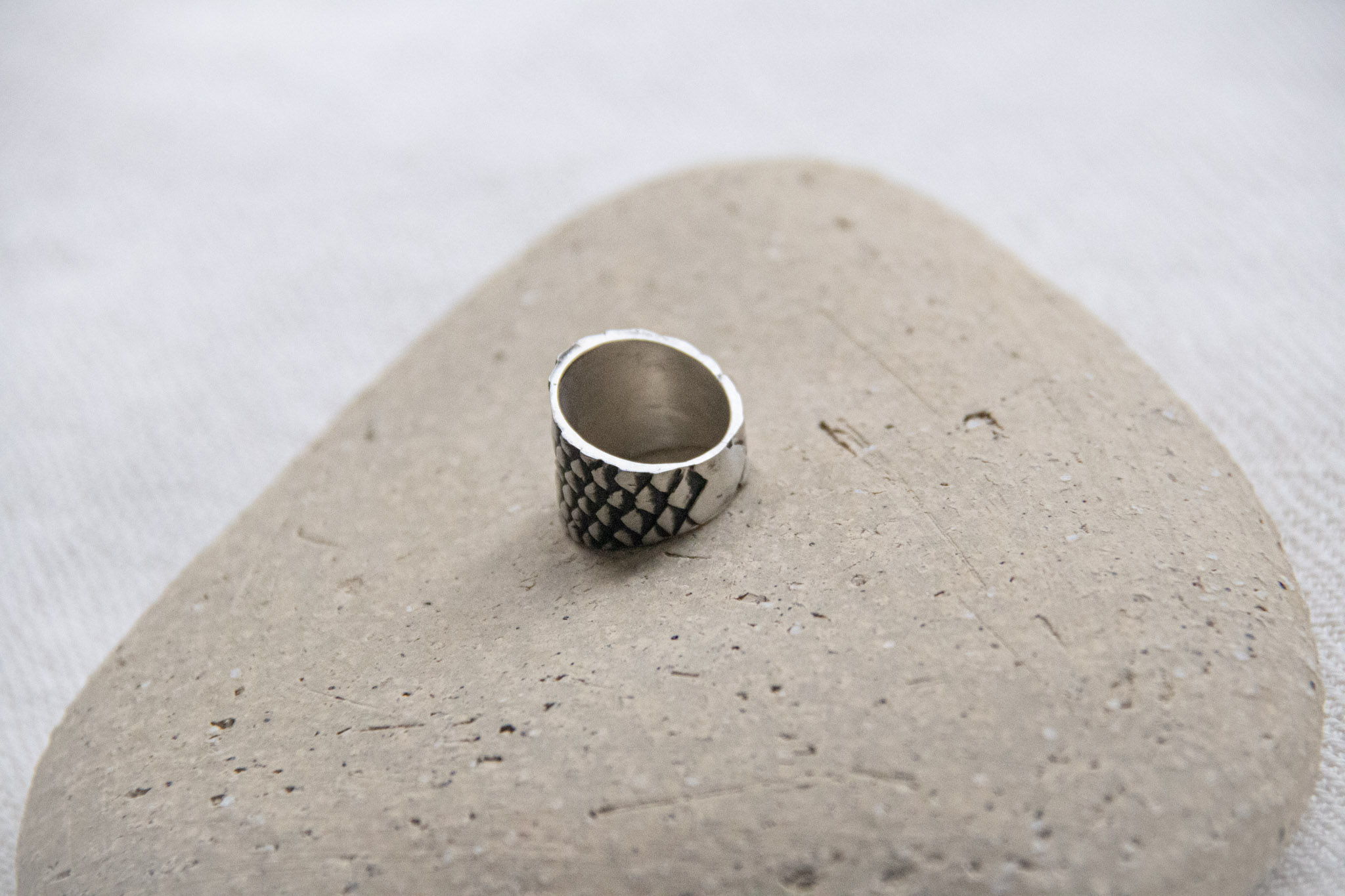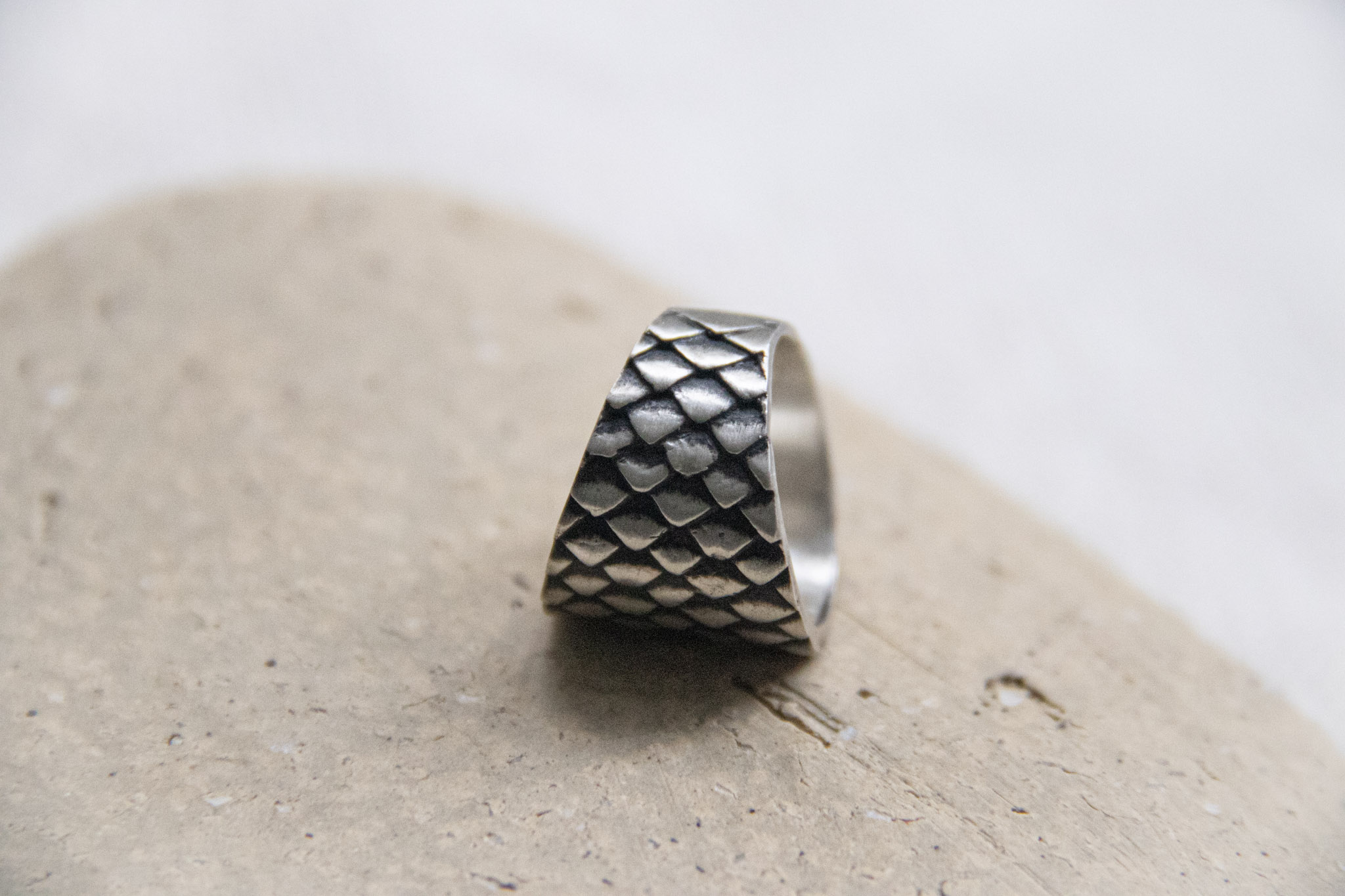 Anillo de plata, cada escama es hecha manualmente. Talla 5.5 / 2 cm de diámetro con 9 gramos de peso.
