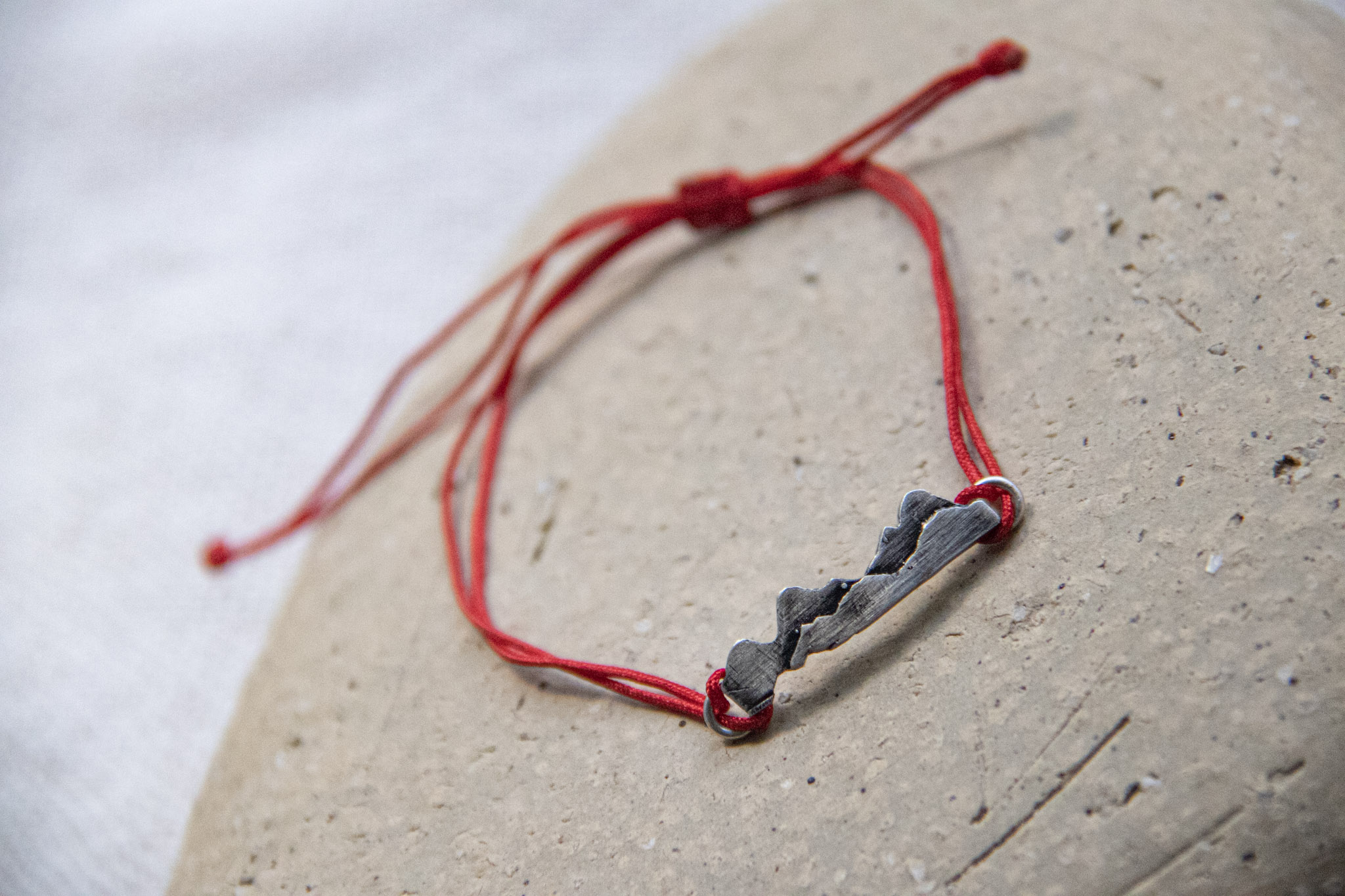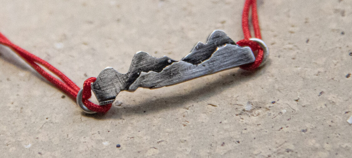 Pulsera «protectora» montañas, es regulable de 1 gramo de plata: 24.6 cm de circunferencia y 7.8 cm de diámetro (ajustable).